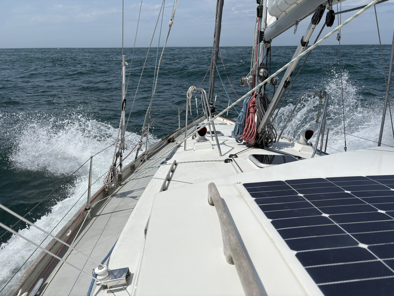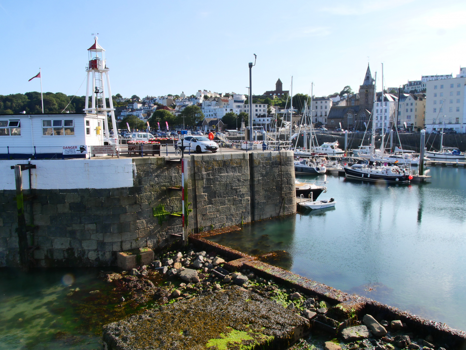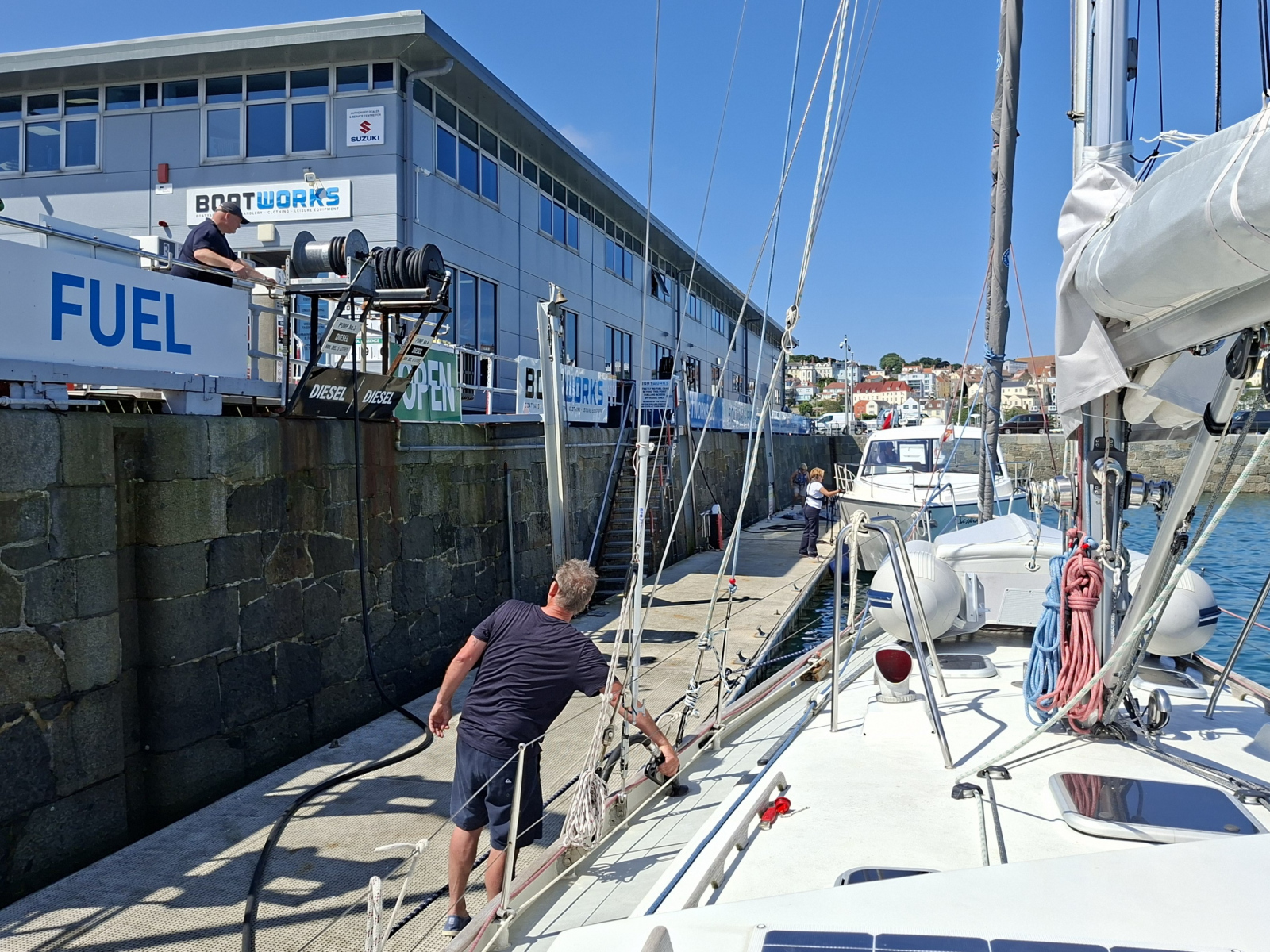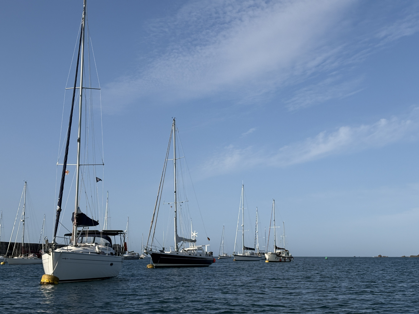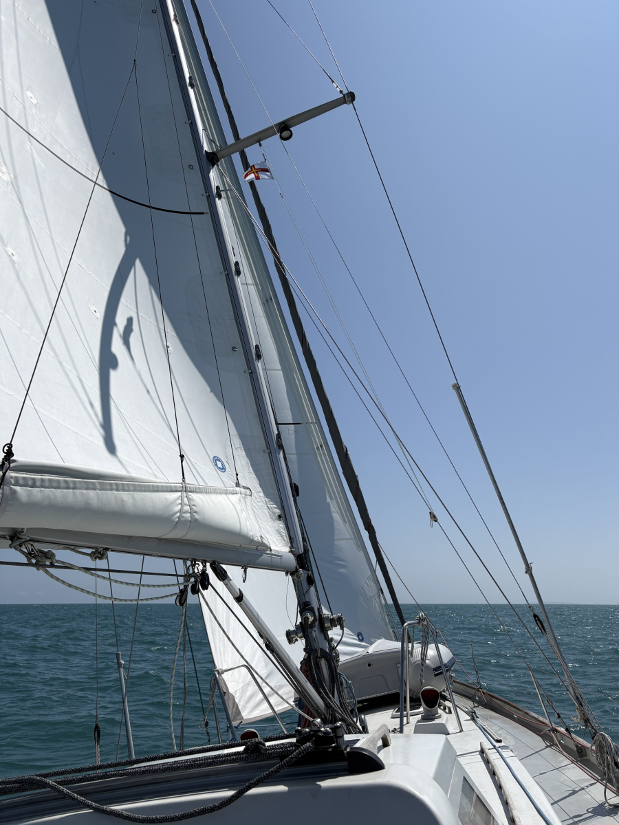 Wir haben sie unbeschadet überstanden, all die Eddys, Races, Untiefen und Widrigkeiten um die Kanalinseln, sogar ohne allzu große Verunsicherungen. Denn merke: Segeln im Gezeitenrevier fühlt sich nicht nach Individualtourismus an! Eine Gegend, in der der Tidenhub bis zu zwölf Meter betragen kann, nimmt jeder Skipper ernst und berechnet sorgfältig mögliche Zeitfenster. So legen in Cherbourg ein Dutzend Yachten ungefähr zur gleichen Zeit ab wie wir und drehen den Bug westwärts. Die meisten biegen später links ab und bleiben küstennah, eine Handvoll steuert ebenfalls die Kanalinseln an, dieses Stück Großbritannien so nah an Frankreich. Dabei sind die Inseln weder Teil des Vereinigten Königreichs noch britisches Überseegebiet, sondern haben den Status von Kronbesitzungen. Sie unterstehen unmittelbar dem König, handeln aber bei inneren Angelegenheiten vollkommen selbstständig, haben sogar eigene Währungen (das Guernsey Pound und das Jersey Pound), Briefmarken und KfZ-Nationalitätskennzeichen. Soweit die Theorie, für uns fühlt es sich unter dem Strich an wie ein Besuch in England: Die Locals sind unfassbar freundlich und zuvorkommend, es gibt an jeder Ecke Fish’n‘Chips – und wo gefahren wird, wird links gefahren.