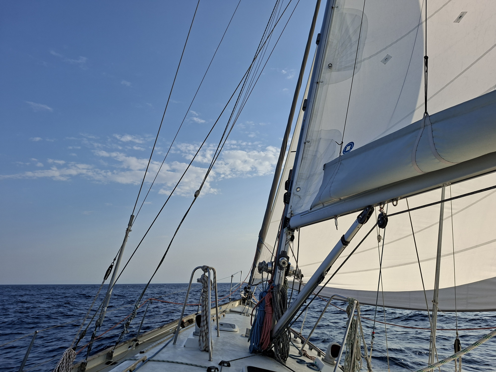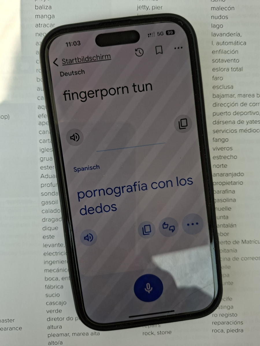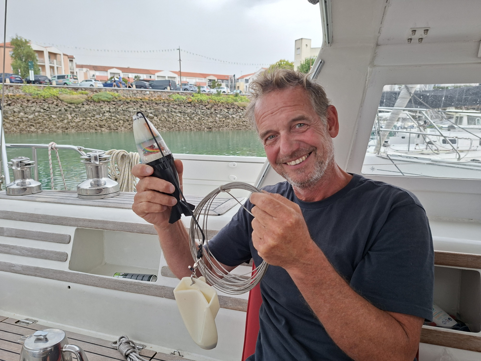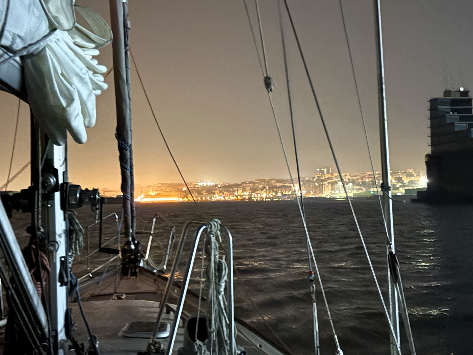 Das Wetterfenster kam früher als gedacht und es war ein gutes: Bereits am Donnerstagmittag verabschieden wir uns von französischen Huîtres, Rillettes und Galettes, werfen die Leinen los und verlassen das quirlige Les Sables d’Olonne meerwärts, eskortiert von einem Jetski-Geschwader. Dann, draußen, wird es Stunde um Stunde einsamer, nur ein paar Delfine schauen vorbei (Orcas glücklicherweise nicht, für alle Fälle haben wir einen Pinger dabei, der sie durch Geräusche abschrecken soll). Der Wind weht um drei, vier Beaufort, wir wechseln zwischen Blister und Klüversegel hin und her. Eine kleine Gewitterzelle verfehlt uns netterweise, schon geht es in die erste stockfinstere Nacht, der Mond hat einen späten und schwachen Auftritt. So wird Vorfreude auf den Sonnenaufgang generiert! Der läutet einen freundlich-ereignisarmen Freitag ein. Wir sind faul, müssen nur selten etwas am Segeltrimm ändern, Flying Fish fliegt von selbst mit sechs bis acht Knoten über das relativ glatte Wasser. Während der Abenddämmerung kommt das spanische Festland in Sicht und kurz nach Mitternacht sind die knapp 200 Seemeilen Mini-Biskaya-Crossing dann geschafft, unser Anker fällt vor der Marina des Bilbao-Vorortes Las Arenas. Bevor wir uns am Morgen dort hinein verholen, versuchen wir uns beim ersten Kaffee schnell noch ein paar nützliche nautische Vokabeln draufzuschaffen. Zum Beispiel ist es immer hilfreich, vor dem Anlegen über Funk herauszufinden, auf welcher Seite des zugewiesenen Liegeplatzes sich der Finger-Pontoon befindet. „fingerporn tun“ versteht die Übersetzungsapp und empfiehlt uns, nach „pornografía con los dedos“ zu fragen. Das wird sicher noch lustig in Spanien.