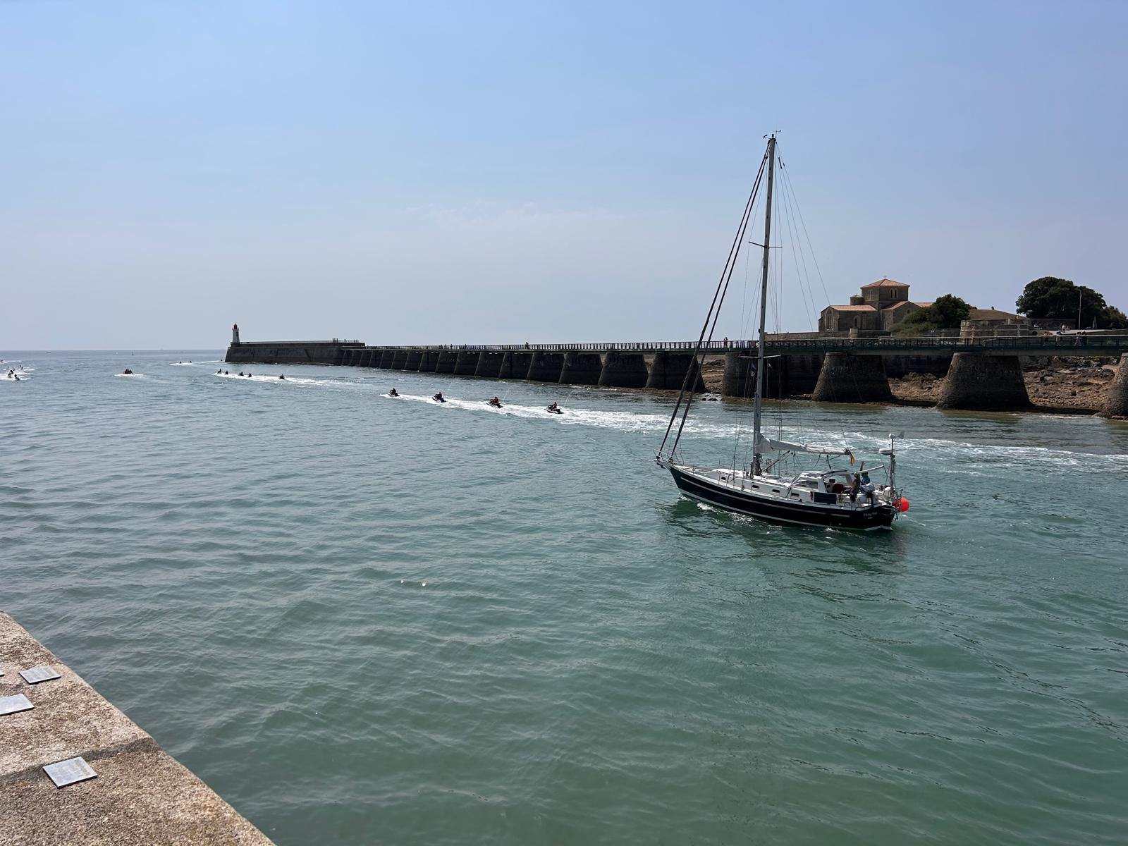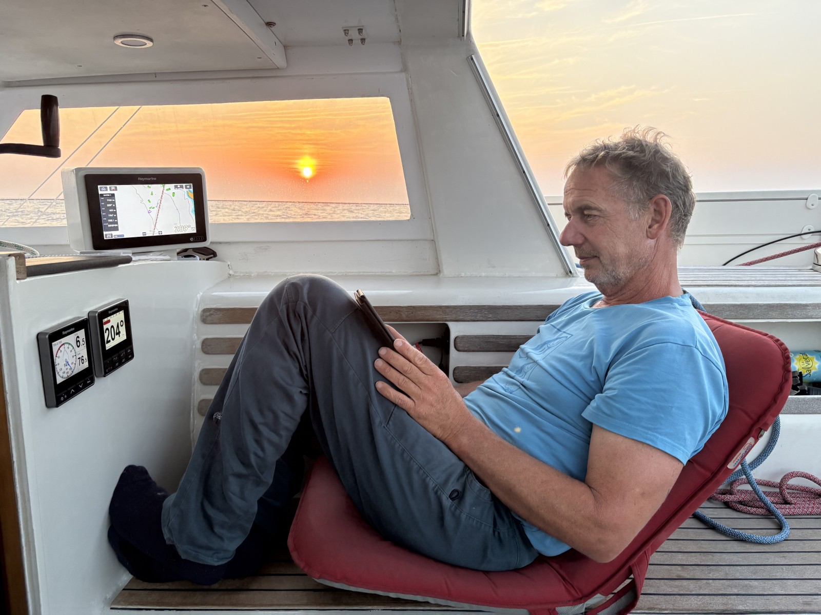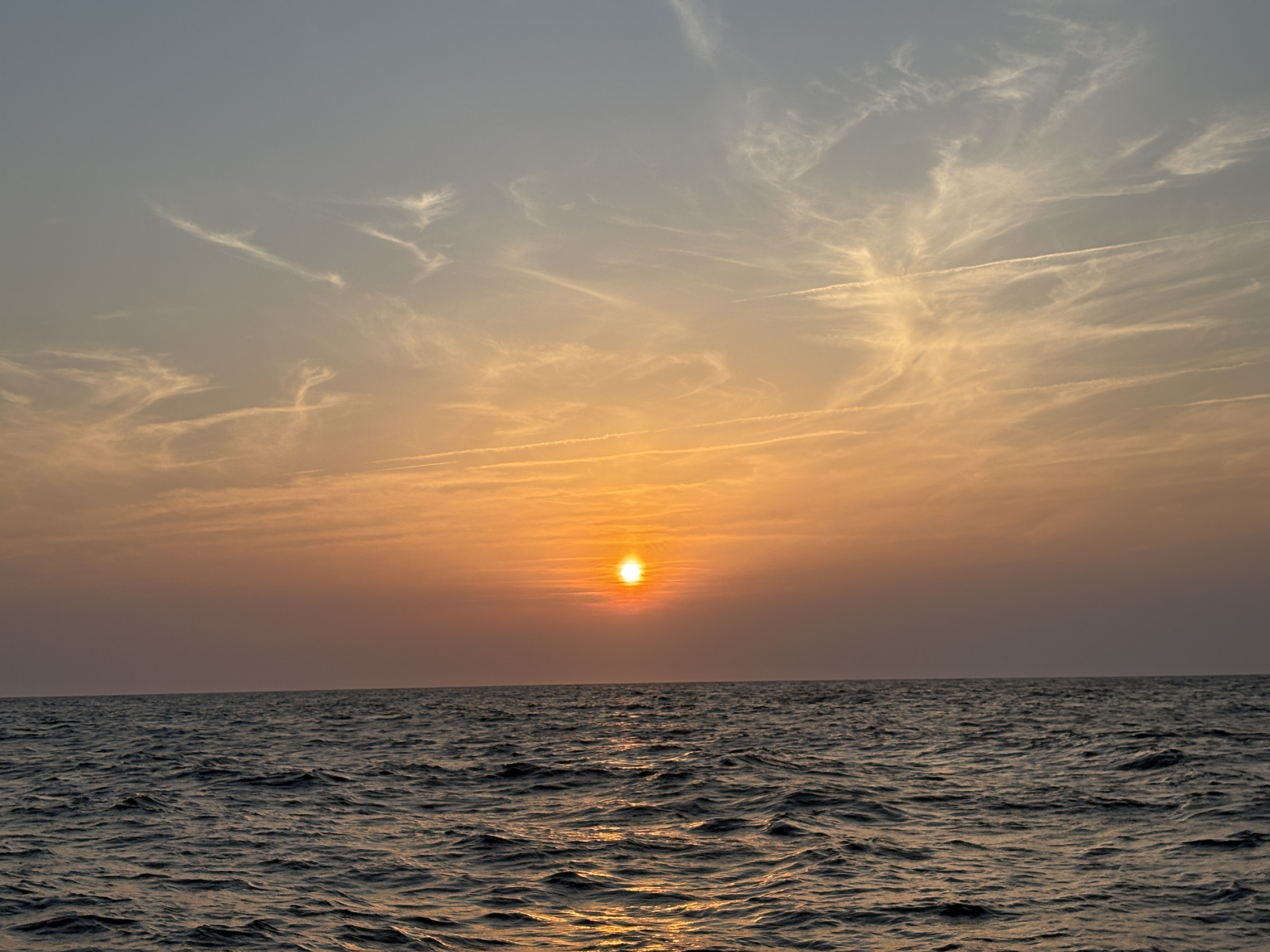 Das Wetterfenster kam früher als gedacht und es war ein gutes: Bereits am Donnerstagmittag verabschieden wir uns von französischen Huîtres, Rillettes und Galettes, werfen die Leinen los und verlassen das quirlige Les Sables d’Olonne meerwärts, eskortiert von einem Jetski-Geschwader. Dann, draußen, wird es Stunde um Stunde einsamer, nur ein paar Delfine schauen vorbei (Orcas glücklicherweise nicht, für alle Fälle haben wir einen Pinger dabei, der sie durch Geräusche abschrecken soll). Der Wind weht um drei, vier Beaufort, wir wechseln zwischen Blister und Klüversegel hin und her. Eine kleine Gewitterzelle verfehlt uns netterweise, schon geht es in die erste stockfinstere Nacht, der Mond hat einen späten und schwachen Auftritt. So wird Vorfreude auf den Sonnenaufgang generiert! Der läutet einen freundlich-ereignisarmen Freitag ein. Wir sind faul, müssen nur selten etwas am Segeltrimm ändern, Flying Fish fliegt von selbst mit sechs bis acht Knoten über das relativ glatte Wasser. Während der Abenddämmerung kommt das spanische Festland in Sicht und kurz nach Mitternacht sind die knapp 200 Seemeilen Mini-Biskaya-Crossing dann geschafft, unser Anker fällt vor der Marina des Bilbao-Vorortes Las Arenas. Bevor wir uns am Morgen dort hinein verholen, versuchen wir uns beim ersten Kaffee schnell noch ein paar nützliche nautische Vokabeln draufzuschaffen. Zum Beispiel ist es immer hilfreich, vor dem Anlegen über Funk herauszufinden, auf welcher Seite des zugewiesenen Liegeplatzes sich der Finger-Pontoon befindet. „fingerporn tun“ versteht die Übersetzungsapp und empfiehlt uns, nach „pornografía con los dedos“ zu fragen. Das wird sicher noch lustig in Spanien.
