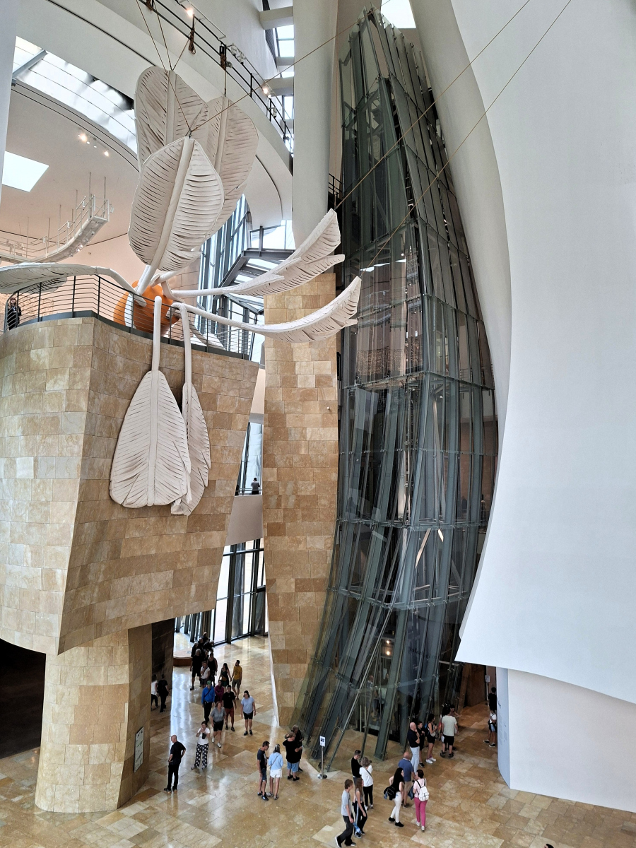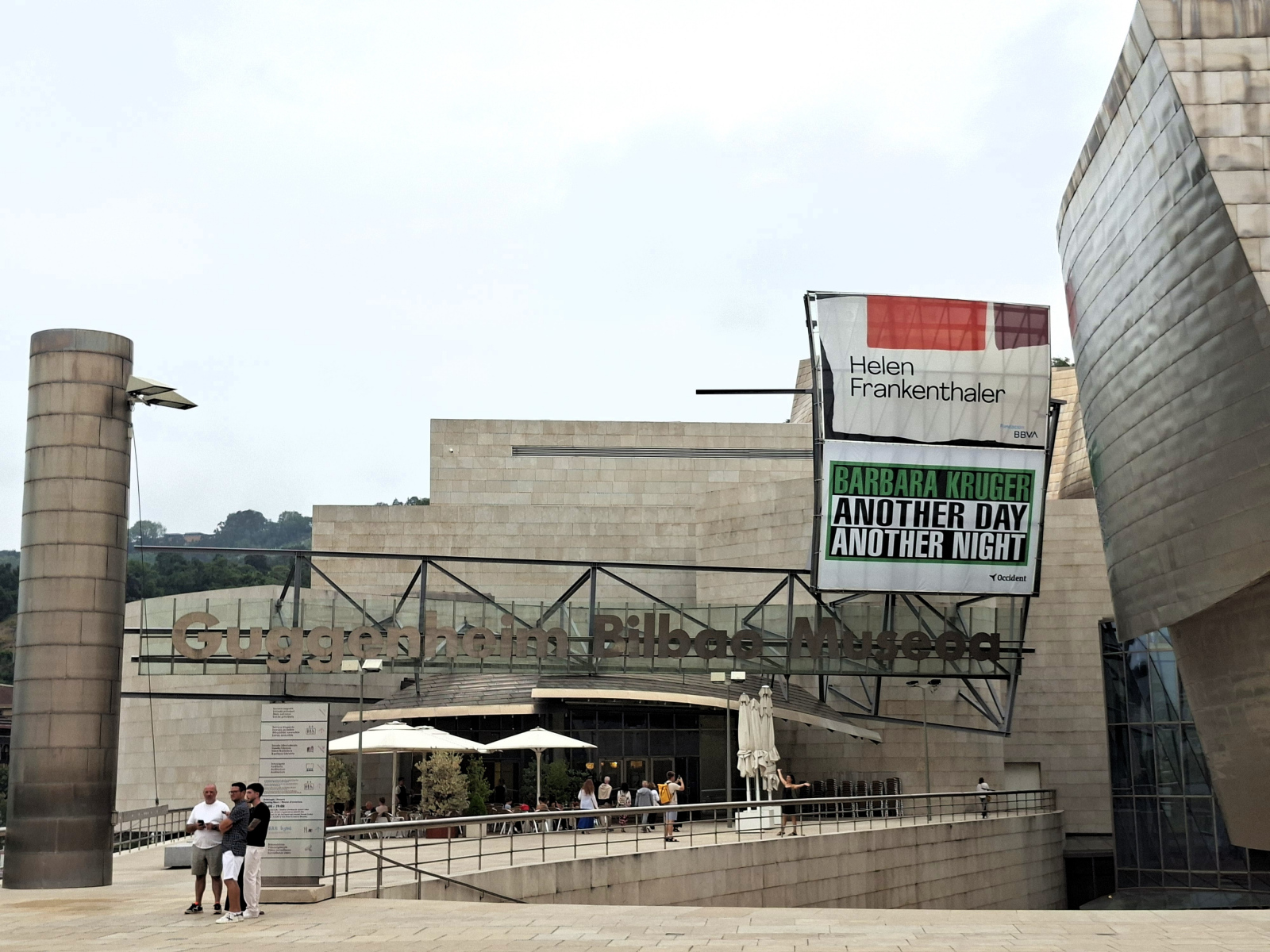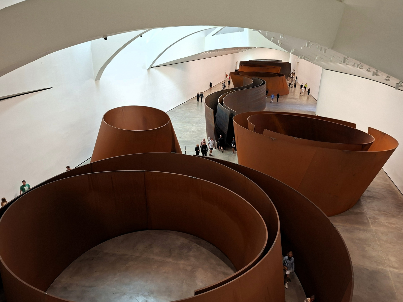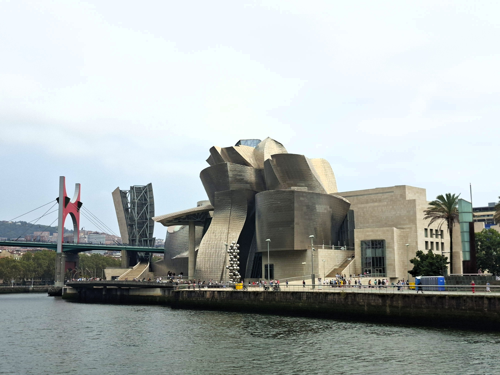 Es war also viel Party in den letzten Tagen, aber natürlich nicht nur! So nehmen wir an einem der trockeneren Tage statt der Metro die Räder und fahren am Río Nervión entlang. Erster Stopp: die Puente Colgante, einzigartige Hängebrücke mit Schwebefähre, ab 1887 erbaut und UNESCO-Weltkulturerbe. Nach ausgiebiger Bestaunung (und einem kurzen Trip mit der Gondel zum gegenüberliegenden Stadtteil Portugalete für die bessere Perspektive) geht es weiter durch die Vororte, wir sehen eine wilde Mischung aus alten Hafen-, Industrie- und Werftgebieten und moderner Stadtentwicklung, eine spannende Gegend im Wandel (im Wandel ist derzeit auch der Radweg, wir würden ihn nicht bei Dunkelheit empfehlen). Auch den markanten und bekannten Gebäuden und Monumenten der Stadt schenken wir gebührende Aufmerksamkeit. Das absolute Highlight aber ist für uns der Besuch des weltberühmten Guggenheim Museums. Vor Jahren waren wir schonmal auf dem Landweg hier und die Vorfreude ist unbändig. Wir sehen alte Bekannte wieder wie die fantastische Riesenspinne „Maman“ von Louise Bourgois, Jenny Holzers laufende Displays und die tonnenschwere begehbare Stahl-Installation von Richard Serra. Und wir entdecken so unglaublich viel Neues, Faszinierendes, Überwältigendes in diesem irren Gebäude. Wie schon beim letzten Besuch ist klar, dass wir wiederkommen werden – des Museums und der Stadt wegen. Oder aber wir bleiben gleich hier, denn Wind und Wellen sind derzeit grätzig und lassen uns eh nicht recht weiter.