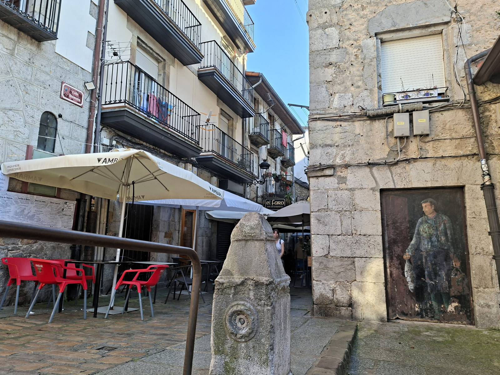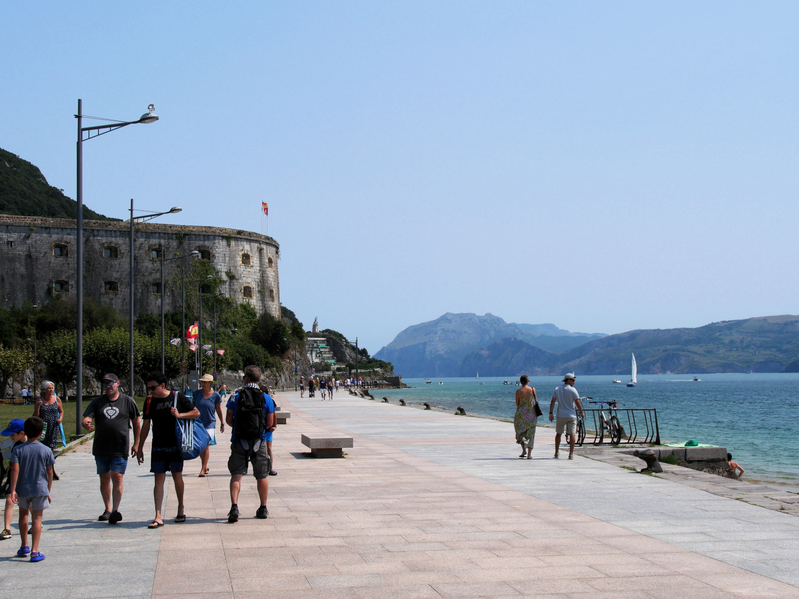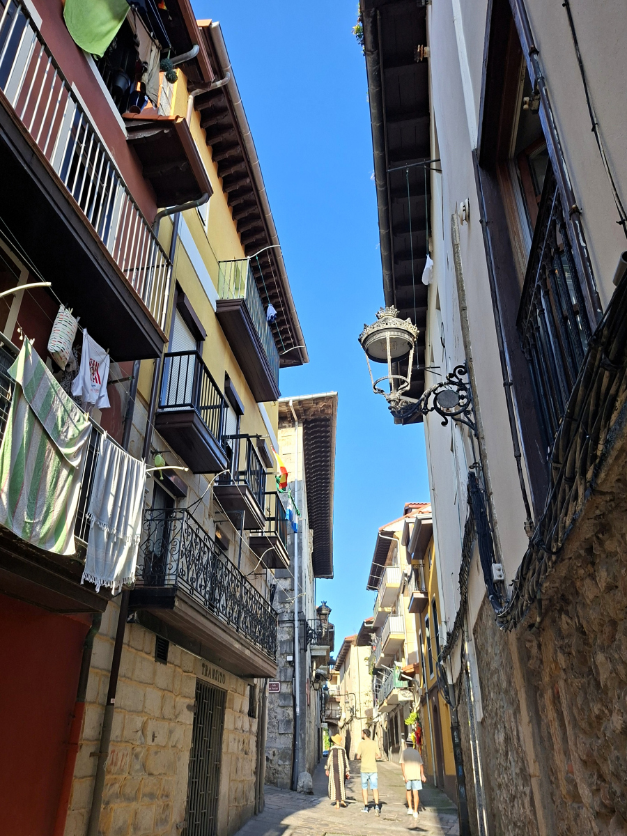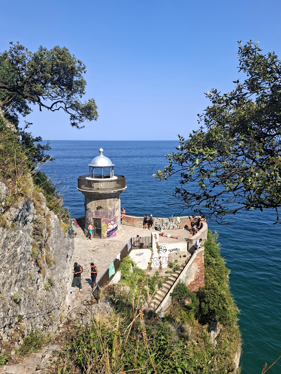 Da steht sie still, die Segelwelt! Seit Ex-Hurrikan Erin das Wetter bestimmt und neben starken westlichen Winden auch bis zu sechs Meter hohe Wellen in die Biskaya schickt, bewegt sich nur noch, wer muss oder unbedingt will. Auf der Übersichtskarte von MarineTraffic bietet sich ein ungewohntes Bild: Fast alle pinkfarbenen Freizeitboot-Symbole kleben an den Rändern des Gewässers, immer nur eine kleine Handvoll ist in Fahrt. Auch wir haben uns verzupft und sind (bereits am Samstag vor einer Woche) mit dem letzten guten Wind von Bilbao nach Laredo gesegelt, dort waren wir nun eine Woche lang, im perfekt geschützten Puerto Deportivo der Ferienstadt. Der liegt ganz am östlichen Ende einer weiten sichelförmigen Bucht, fünf Kilometer feinsten Sandstrandes erstrecken sich westwärts. Leider wurde die Zone jenseits der Promenade konsequent und auf ganzer Länge zubetoniert, im Costa-del-Sol-Stil. Hinter dieser Bebauung verschwindet nahezu die bezaubernde kleine Altstadt von Laredo: eine Handvoll kuschelig-enger Gassen mit malerischen Winkeln um die gotische Kirche Santa María, wirklich schön. Direkt nebenan begrenzt das Atalaya-Massiv den Ort. Zwischen 1863 und 1964 wurde meerwärts ein 220 Meter langer Tunnel durch den Berg angelegt, ursprünglich mit dem Plan, auf der anderen Seite einen Bootsanleger zu bauen. Doch die hiesigen Wetterbedingungen wussten dies zu vereiteln, heute ist der Túnel de la Atalaya eine ungewöhnliche touristische Attraktion und führt zu einem netten Aussichtspunkt.