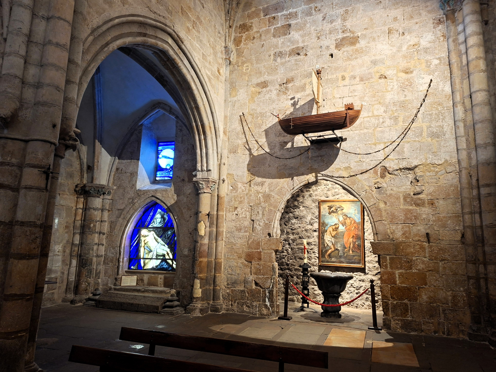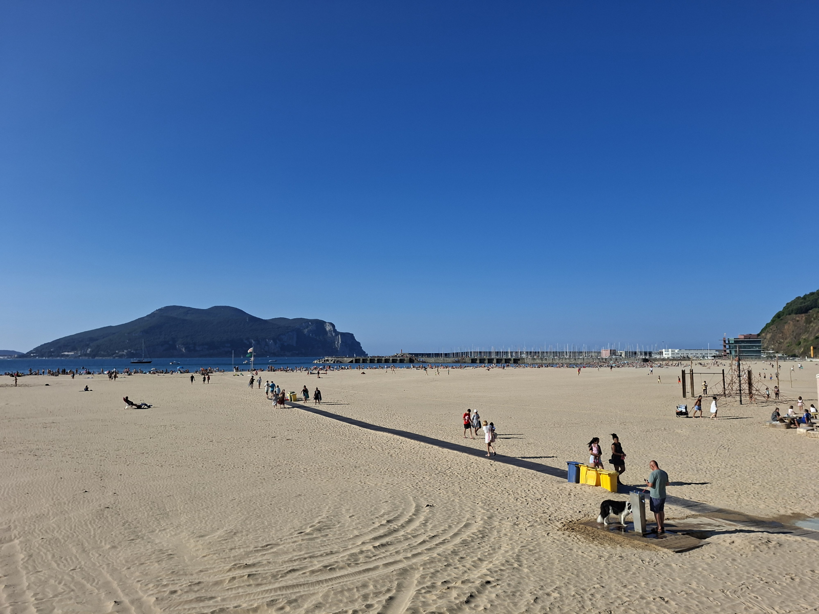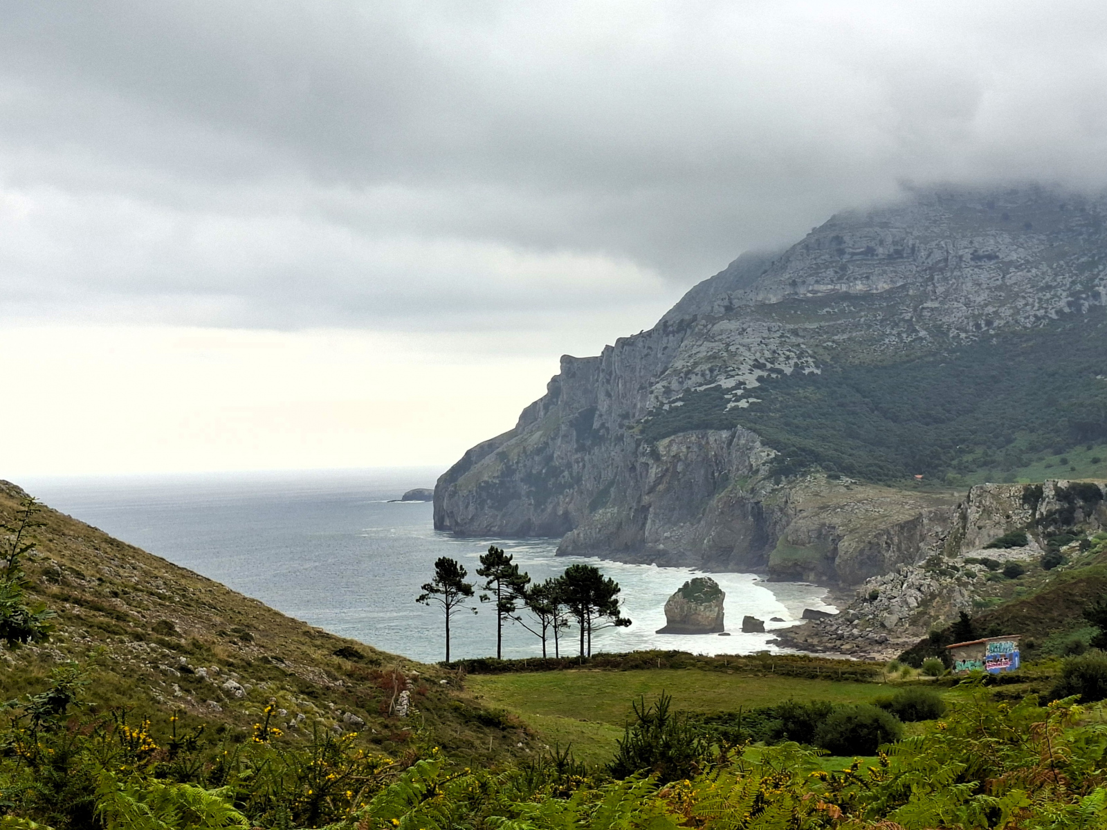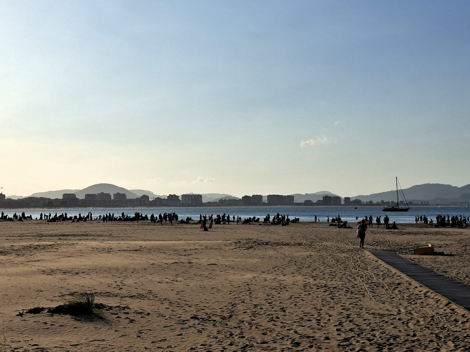 Da steht sie still, die Segelwelt! Seit Ex-Hurrikan Erin das Wetter bestimmt und neben starken westlichen Winden auch bis zu sechs Meter hohe Wellen in die Biskaya schickt, bewegt sich nur noch, wer muss oder unbedingt will. Auf der Übersichtskarte von MarineTraffic bietet sich ein ungewohntes Bild: Fast alle pinkfarbenen Freizeitboot-Symbole kleben an den Rändern des Gewässers, immer nur eine kleine Handvoll ist in Fahrt. Auch wir haben uns verzupft und sind (bereits am Samstag vor einer Woche) mit dem letzten guten Wind von Bilbao nach Laredo gesegelt, dort waren wir nun eine Woche lang, im perfekt geschützten Puerto Deportivo der Ferienstadt. Der liegt ganz am östlichen Ende einer weiten sichelförmigen Bucht, fünf Kilometer feinsten Sandstrandes erstrecken sich westwärts. Leider wurde die Zone jenseits der Promenade konsequent und auf ganzer Länge zubetoniert, im Costa-del-Sol-Stil. Hinter dieser Bebauung verschwindet nahezu die bezaubernde kleine Altstadt von Laredo: eine Handvoll kuschelig-enger Gassen mit malerischen Winkeln um die gotische Kirche Santa María, wirklich schön. Direkt nebenan begrenzt das Atalaya-Massiv den Ort. Zwischen 1863 und 1964 wurde meerwärts ein 220 Meter langer Tunnel durch den Berg angelegt, ursprünglich mit dem Plan, auf der anderen Seite einen Bootsanleger zu bauen. Doch die hiesigen Wetterbedingungen wussten dies zu vereiteln, heute ist der Túnel de la Atalaya eine ungewöhnliche touristische Attraktion und führt zu einem netten Aussichtspunkt.