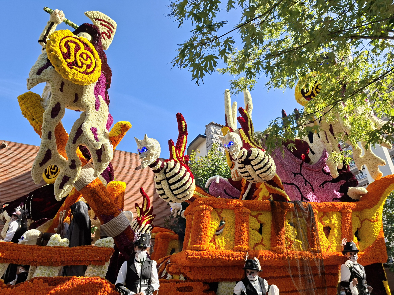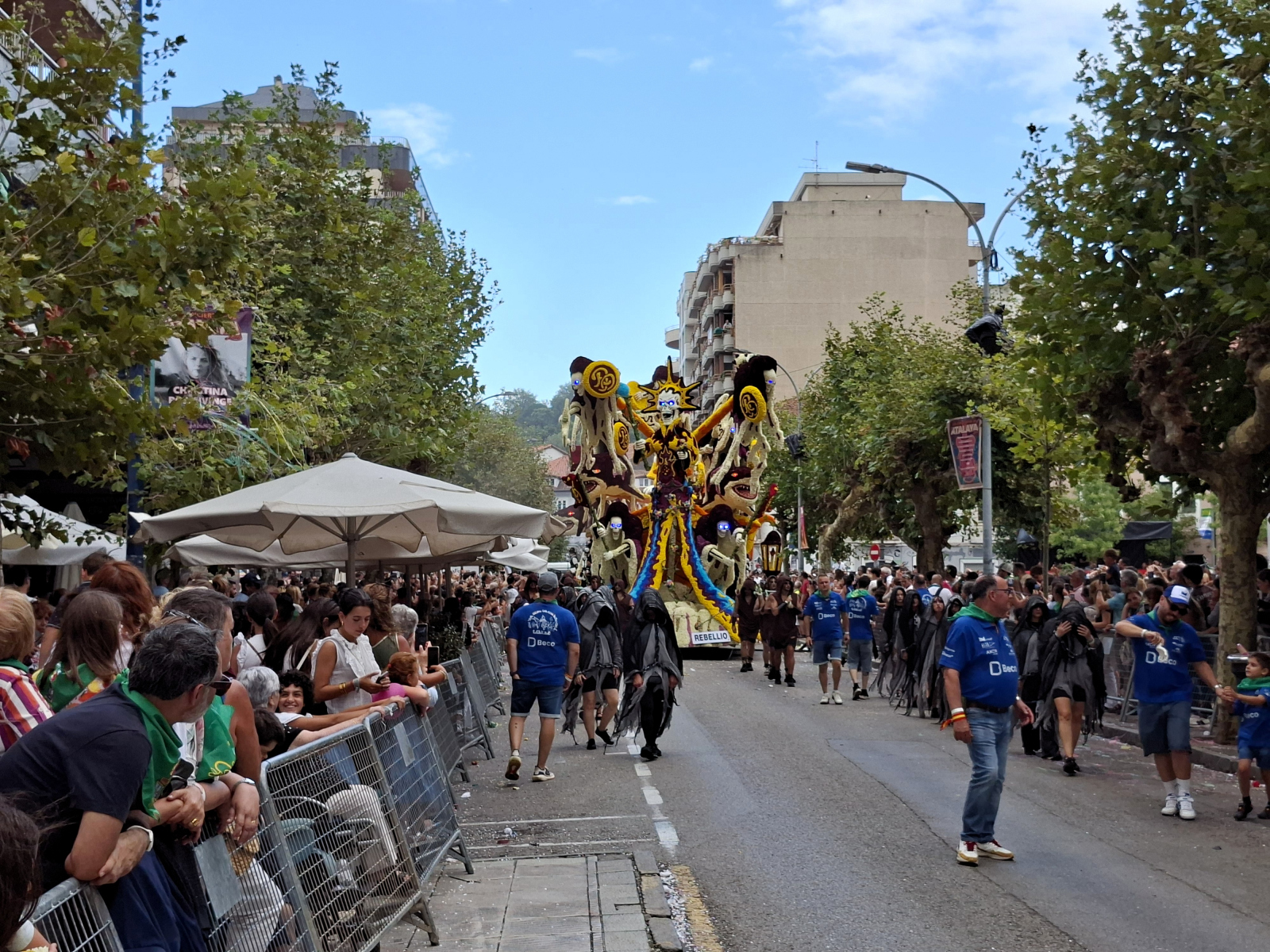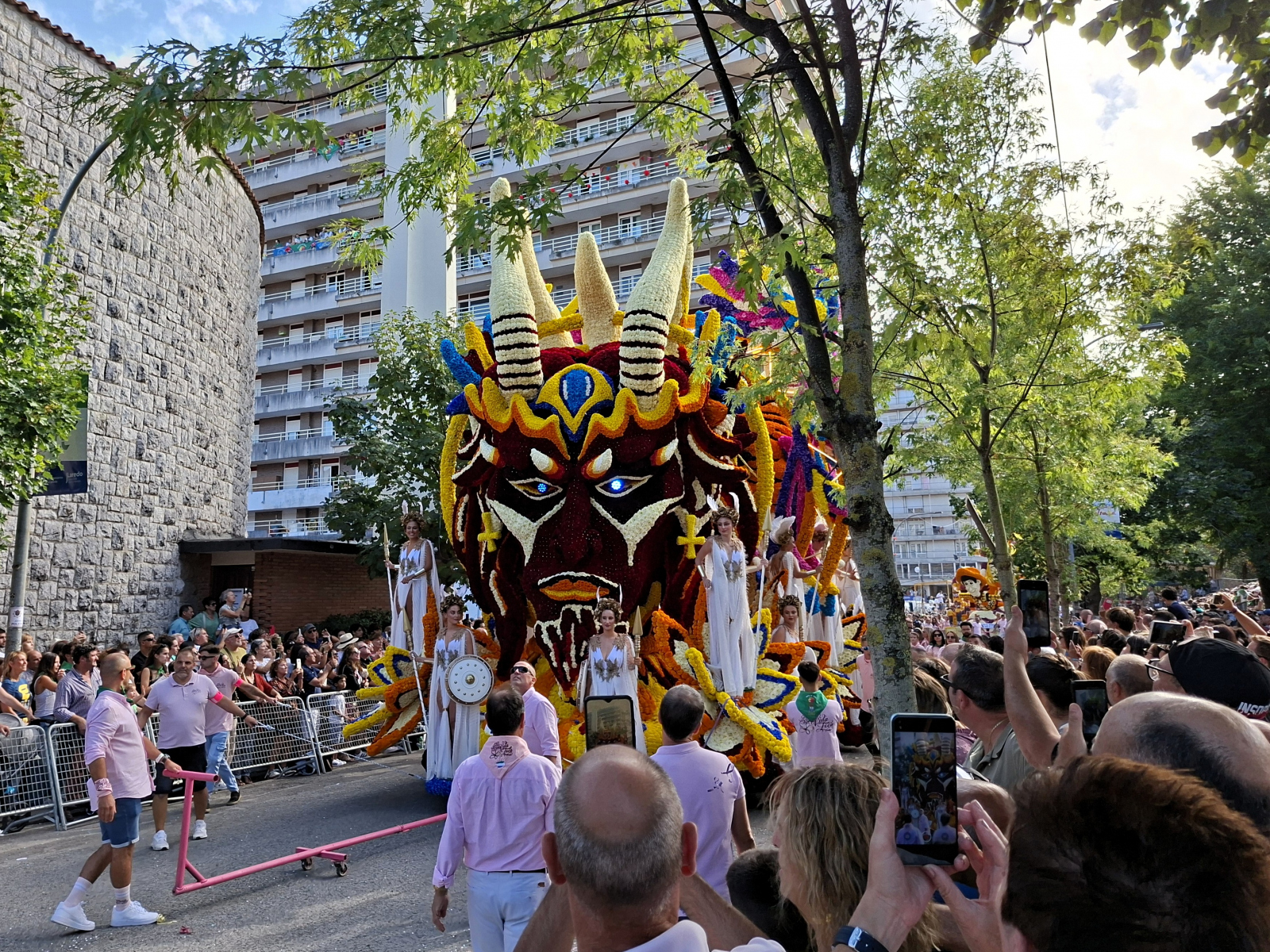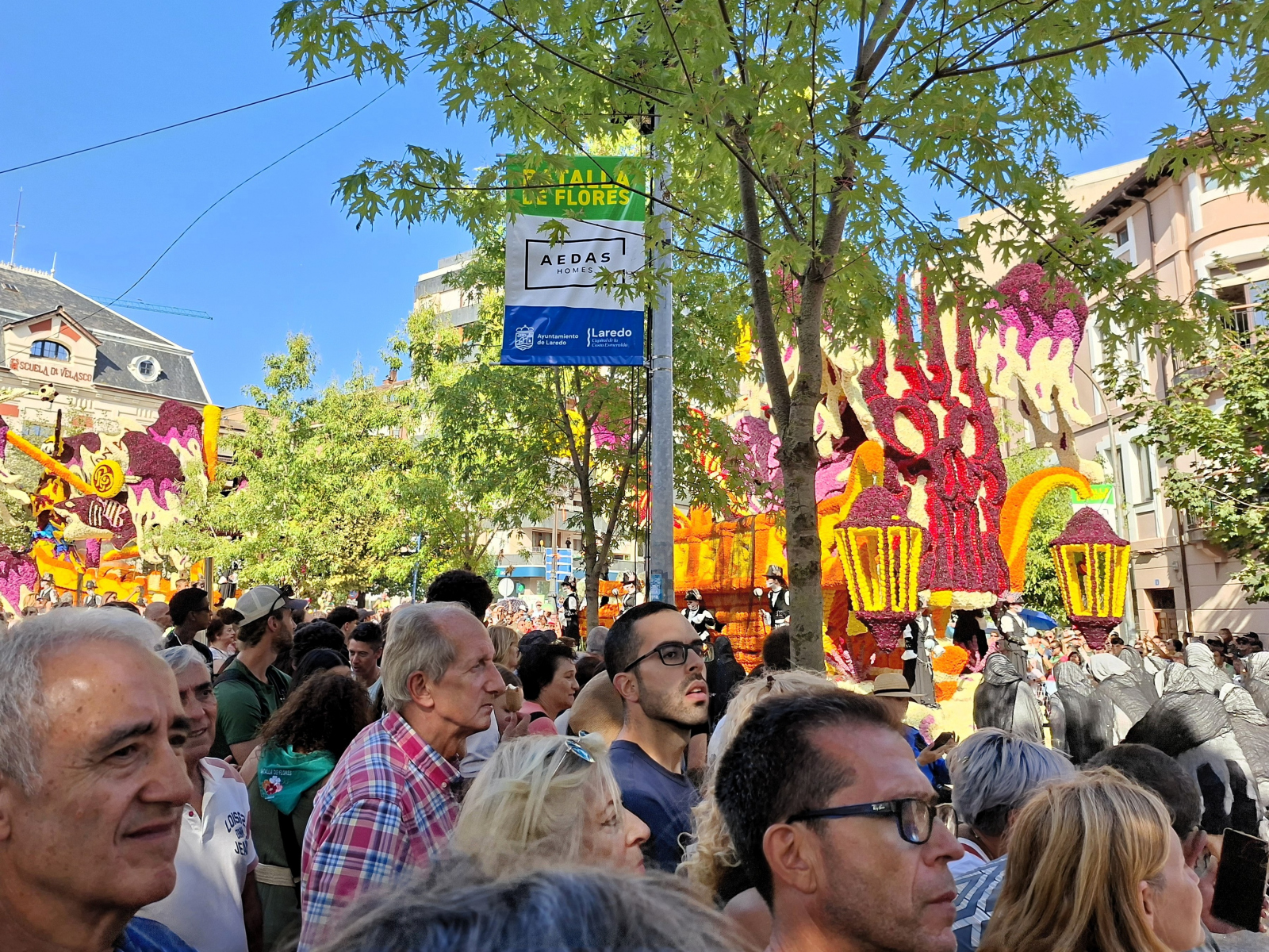 Wie schon in Bilbao kommen wir auch in Laredo pünktlich zur Fiesta des Jahres an: Die Batalla de Flores ist eines der bekanntesten und ältesten Blumenfeste Spaniens. Eine Woche lang abendliche Konzerte und Veranstaltungen! Wir merken jedoch schon bei der Eröffnung am Montag, dass das Ganze nicht so wirklich unseren Geschmack trifft. Top-Act Rosario singt voller Inbrunst und schüttelt wild ihr schönes Haar, doch Schlager bleibt Schlager, da hilft auch nicht, dass es die spanische Variante ist. Für die folgenden Abende sind Oldie-Coverbands angekündigt, wir bleiben fern. Erst am Freitagnachmittag feiern wir wieder mit, da gipfelt die Batalla in einer Parade kunstvoll gestalteter Blumenwagen, die monatelang von Freundes- und Familiengruppen vorbereitet und zuletzt mit – ausschließlich echten – Blumen dekoriert werden, abertausende bunte Dahlien und Chrysanthemen. Entlang der Umzugsstrecke sind Tribünen aufgebaut, Menschen drängen sich an den Absperrungen. Dann fahren langsam die Festwagen vorbei, gezogen und geschoben von Erwachsenen, oben, auf kleinen Plateaus, kostümierte Kinder und Jugendliche (von denen manche nicht hundertprozentig überzeugt von ihrer Rolle scheinen). Welchen Wagen mit welchem Motto die Jury zum Sieger kürt, erfahren wir nicht, nach dem ersten Durchgang überkommt uns der Hunger. Das mitternächtliche Abschlussfeuerwerk genießen wir von Bord aus, es wird direkt am Hafen gezündet und ist wirklich spektakulär anzusehen! Dabei haben wir großes Glück mit unserem Liegeplatz und der Windrichtung, im Gegensatz zu anderen Booten wird Flying Fish nur von wenig Trümmerteilen und Ascheregen erwischt.