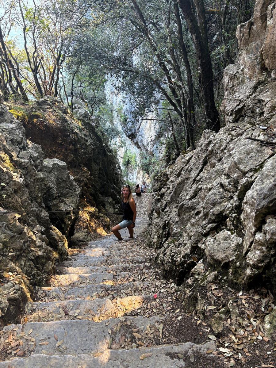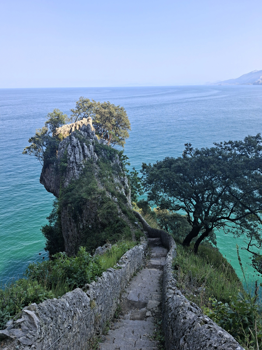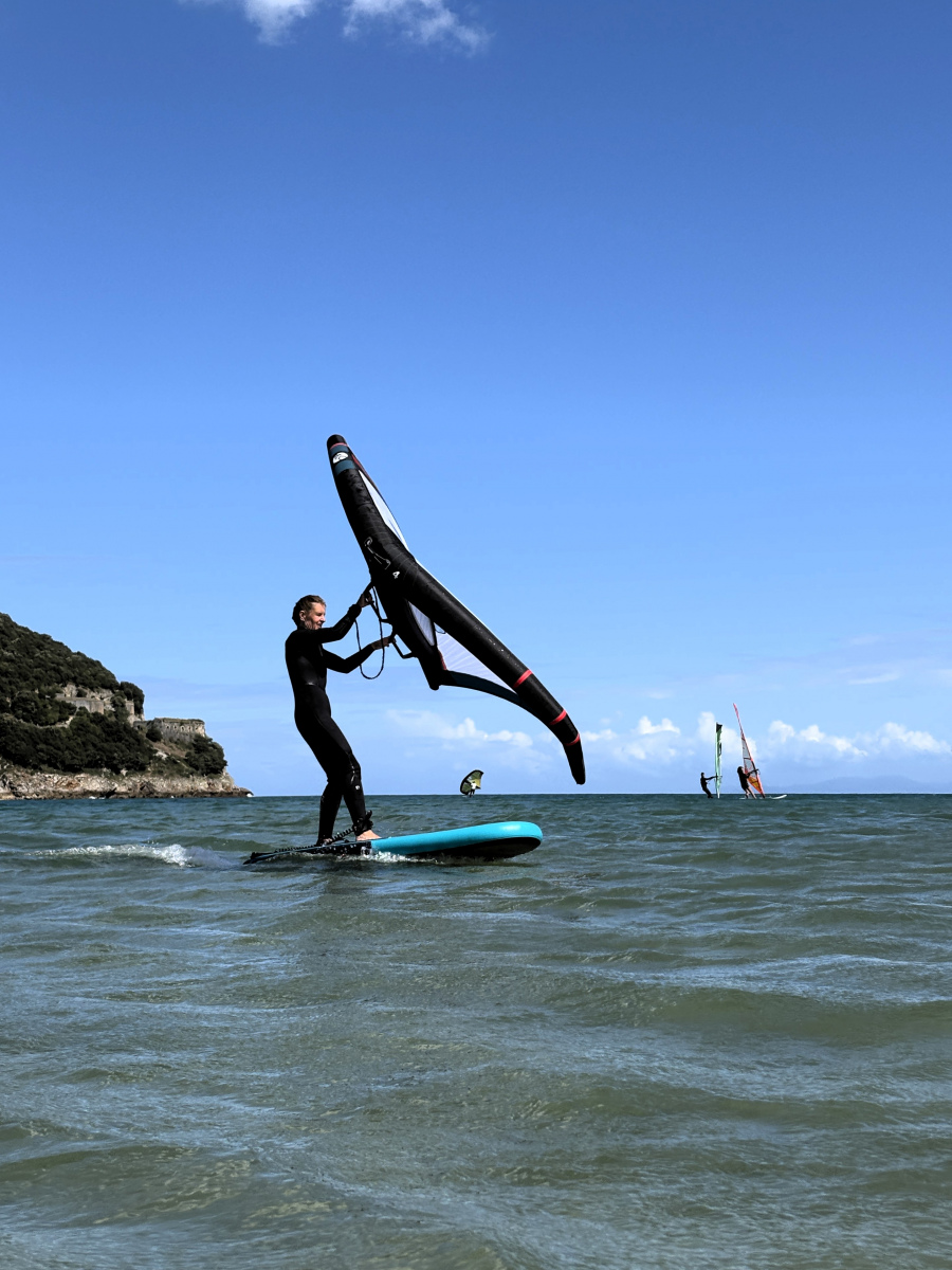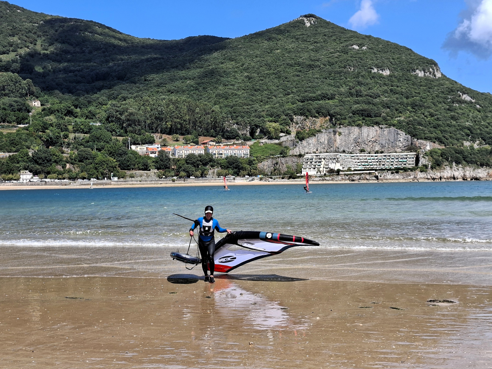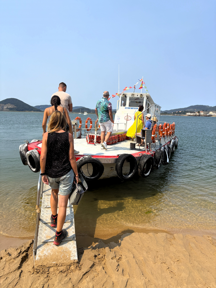 Die Woche in Laredo verfliegt rasant, denn auch außerhalb der Blumenschlacht ist viel zu erleben und zu tun. So bietet sich endlich wieder die Gelegenheit zum Wingsurfen! Heiko beginnt sogar mit dem Foilen und schafft es erste Male kurz aus dem Wasser. Dann gibt es hier gute Wandermöglichkeiten: Zum Warmwerden fahren wir mit der kleinen Pendelfähre, die direkt am Strand startet, rüber in den Nachbarort Santoña, laufen von dort den Küstenweg entlang zum Faro del Caballo inklusive der 763 Stufen, die hinunterführen. So viele schöne Views unterwegs! Unsere Lieblingstour aber führt von Laredo ostwärts, zu den Ojos del Diablo. Beim Start finden wir es noch schade, dass die Sonne nicht scheint, später sind wir angesichts der 820 Höhenmeter, verteilt auf 17 Kilometer, ganz froh, nicht noch mehr schwitzen zu müssen. Eine schöne, abwechslungsreiche Strecke mit kleinen Kletterpassagen, landschaftlich wunderbar, nicht überlaufen (mehr Ziegen als andere Touris), dazu sind die Teufelsaugen im Fels ein tolles Ziel. Und drum herum hatten wir es schön gesellig: Seit Bilbao segeln die beiden Kölner Eva und Kim mit ihrer SY Mana wieder parallel, außerdem leisteten Liek und Paul, die niederländische Crew der SY Shiva, uns Gesellschaft. So konnten wir nicht nur das Blumen-Finale zu sechst genießen, sondern auch Tapas- und sonstige leckere Abende zusammen verbringen und unter Lieks Anleitung Yoga üben. Nun haben sich die Wege teils getrennt, wir ankern gerade neben der Mana vor Santander, sind gestern bei rund zweieinhalb Metern Welle hierher gemotorsegelt. Morgen ziehen wir wohl in die Marina um, es wird wieder ungemütlich.